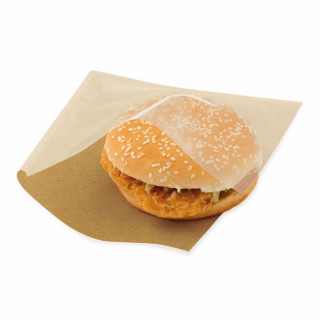 Купить Конвертик для еды с окном 19*19 см, натуральный цвет, 100 шт/уп, крафт-бумага + PELD, натуральный, G